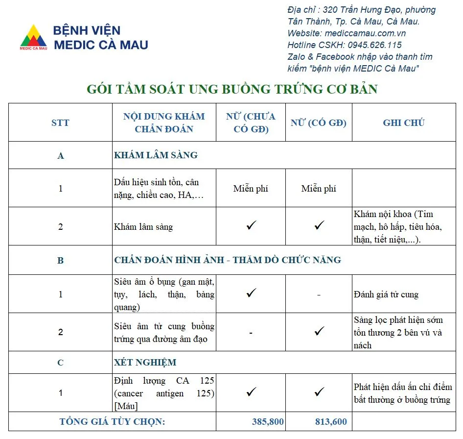 Gói Tầm soát ung thu buồng trứng