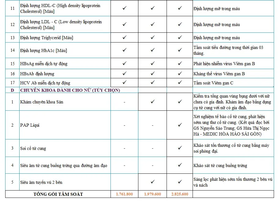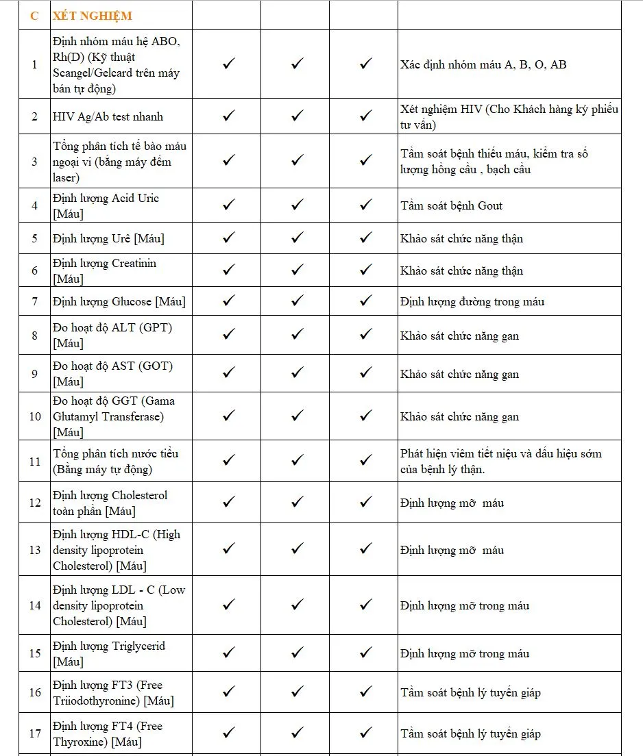Các gói khám tầm soát