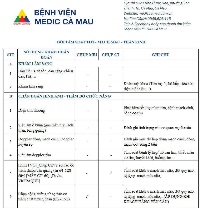 Gói Tầm soát bệnh lý Tim - Mạch máu - Thần kinh